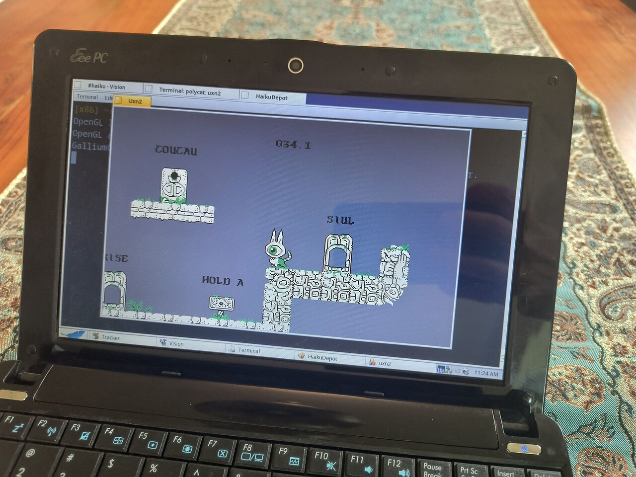 Polycat running on a 2009 EeePC under HaikuOS (photo by TBSP)