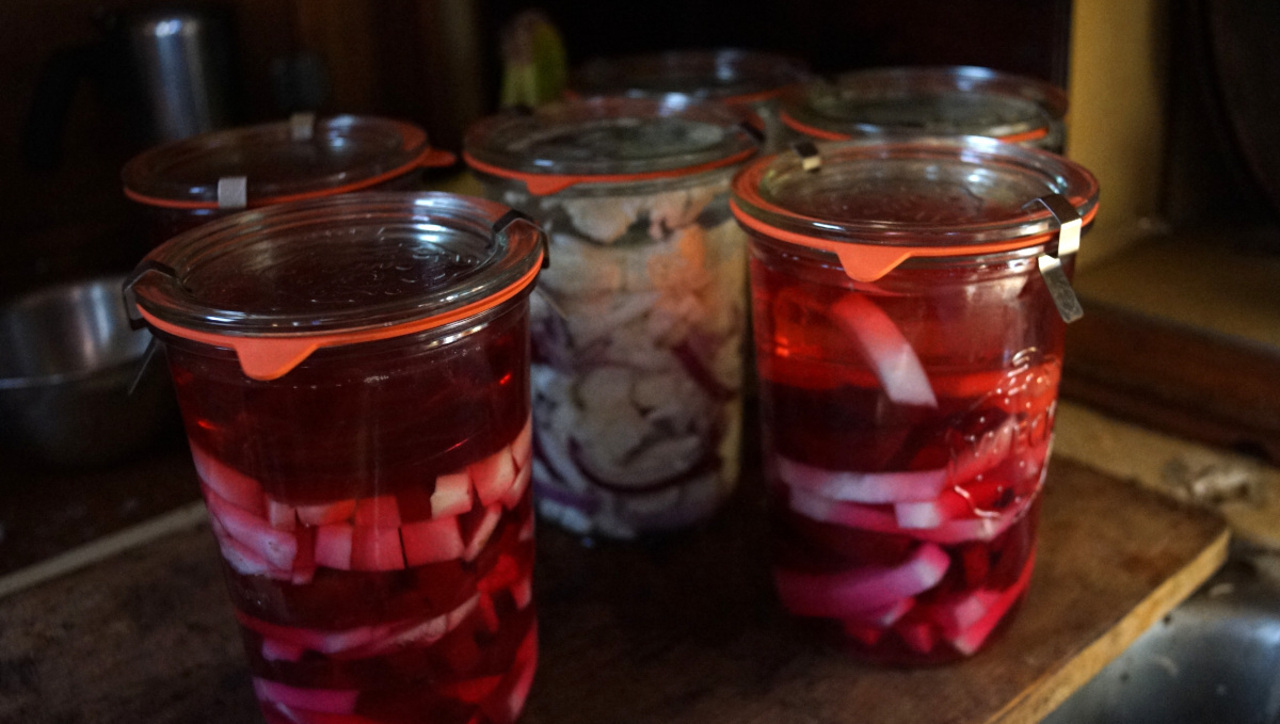 Preparing some pickled cauliflower and red onion for the summer.