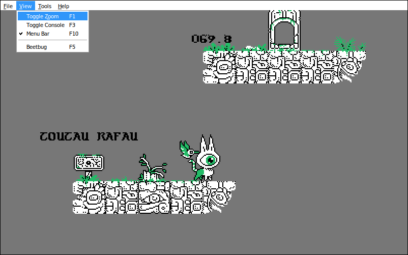 I've been meaning to have the menu rom complete before the month starts, but alas. So this morning I've added arrow controls to help with selecting the right thing from the menu's list, and I've added A button and Enter key to send the selection to Porporo. I think this month will be a lot of this, working on something from within the system, and partly fixing the little friction that I encounter along the way.